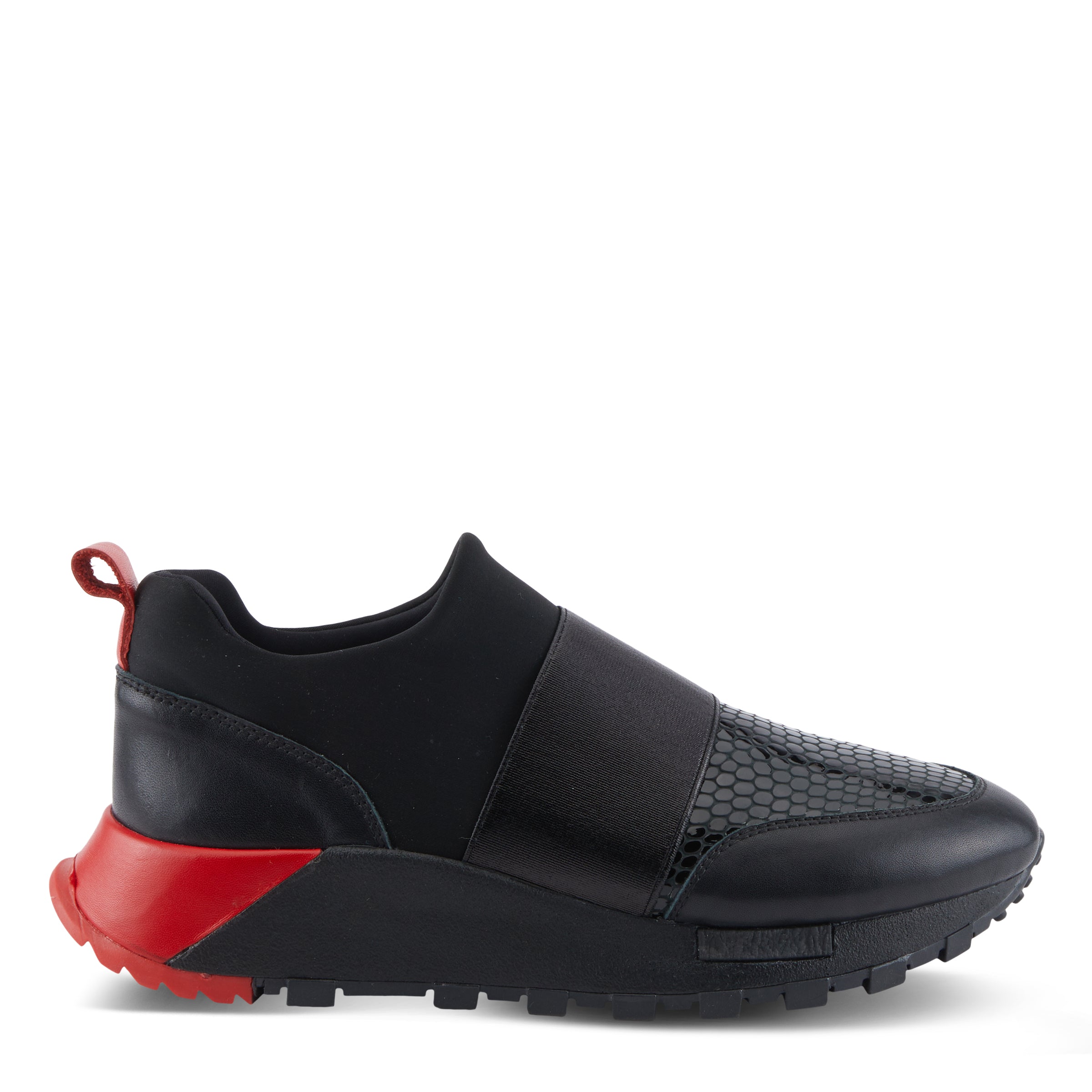 - Detalles de cuero rojo contrastante en la lengüeta del talón y la parte trasera para un estilo destacado.