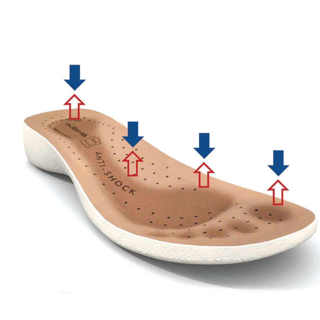 The Flexus sole is pre-formed to the natural foot anatomy, ensuring proper support, giving you maximum comfort.