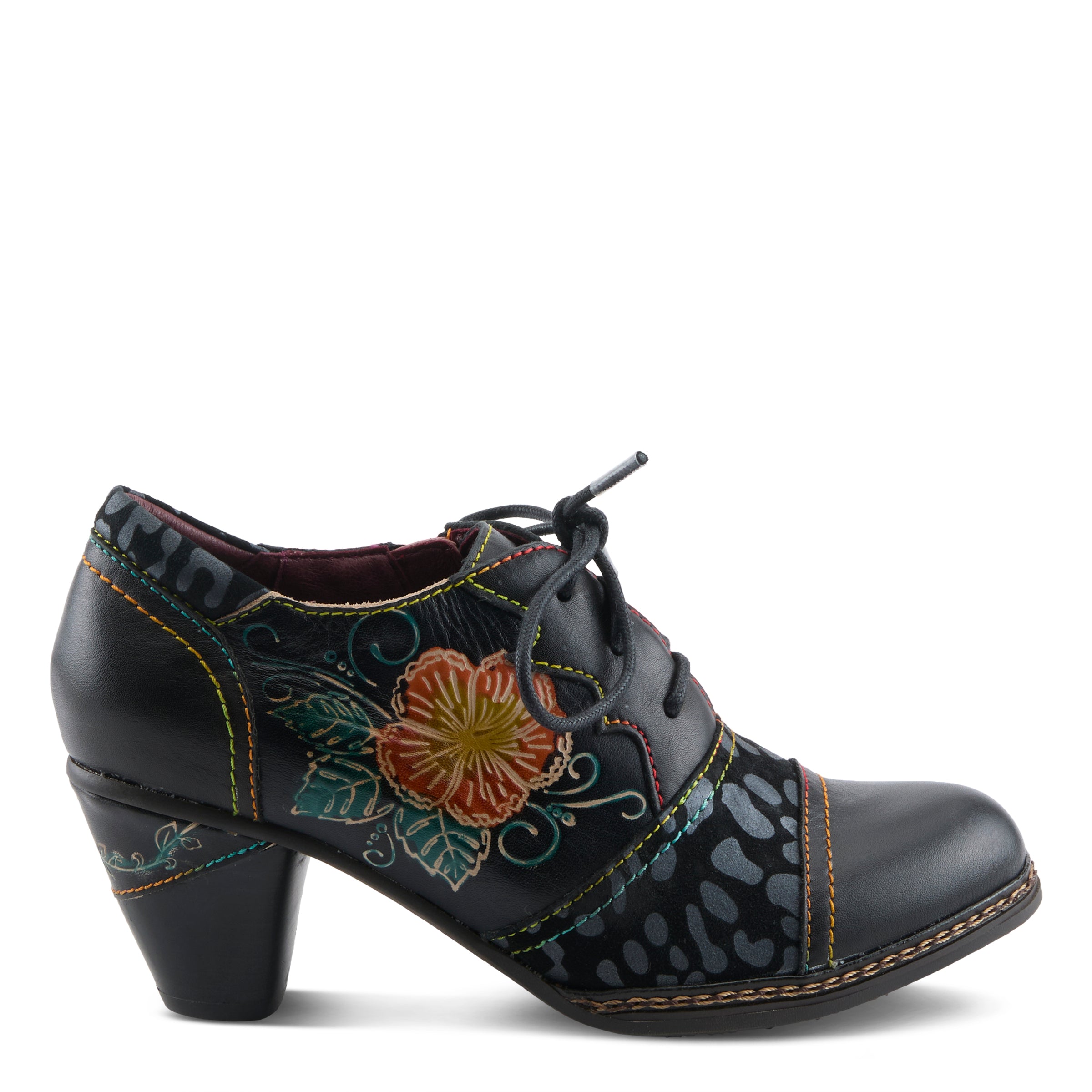 Unleash your bold and artistic side with this striking baroque-inspired lace-up oxford. Crafted from a premium leather upper, this shoe is a true masterpiece, featuring intricate floral embossing, leopard print accents, and contrast stitching for a daring yet sophisticated look. The stacked mid-heel provides just the right amount of lift while ensuring stability and comfort. A cushioned insole keeps you feeling great all day, making this shoe perfect for work, casual outings, or nights out. Elevate your wardrobe.