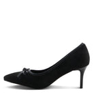 Timeless elegance meets modern sophistication in this ultra-chic pump. Designed with a luxurious ultra-suede upper, it offers a soft, velvety texture that enhances its refined appeal. A delicate bow detail adds a touch of feminine charm, while the pointed toe elongates the leg for a sleek, polished look. The mid-height stiletto heel provides the perfect balance of style and comfort, making it ideal for day-to-night wear. Whether paired with tailored workwear or an evening ensemble, this fashion-forward pump is a must-have for effortless sophistication.