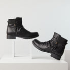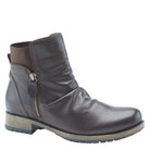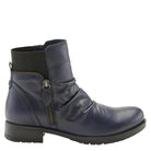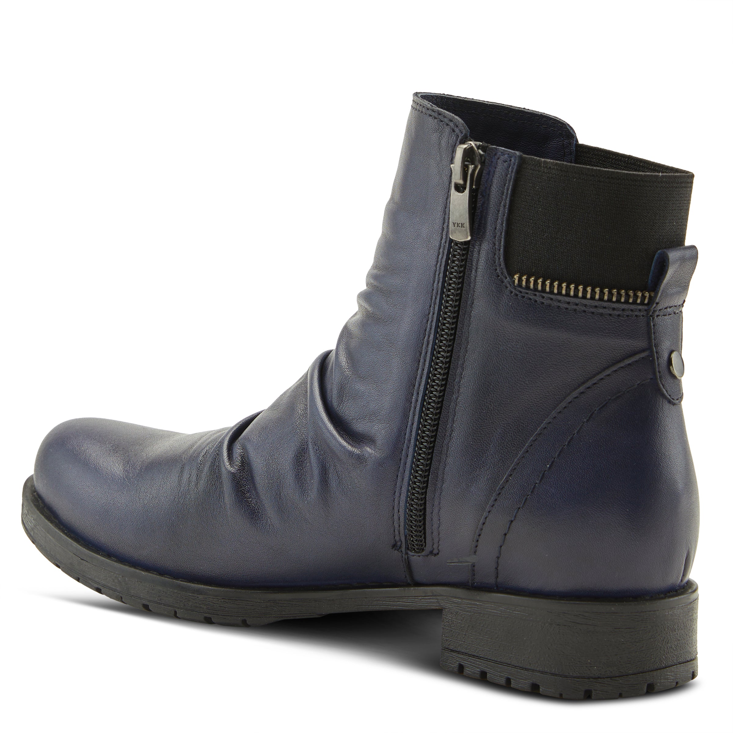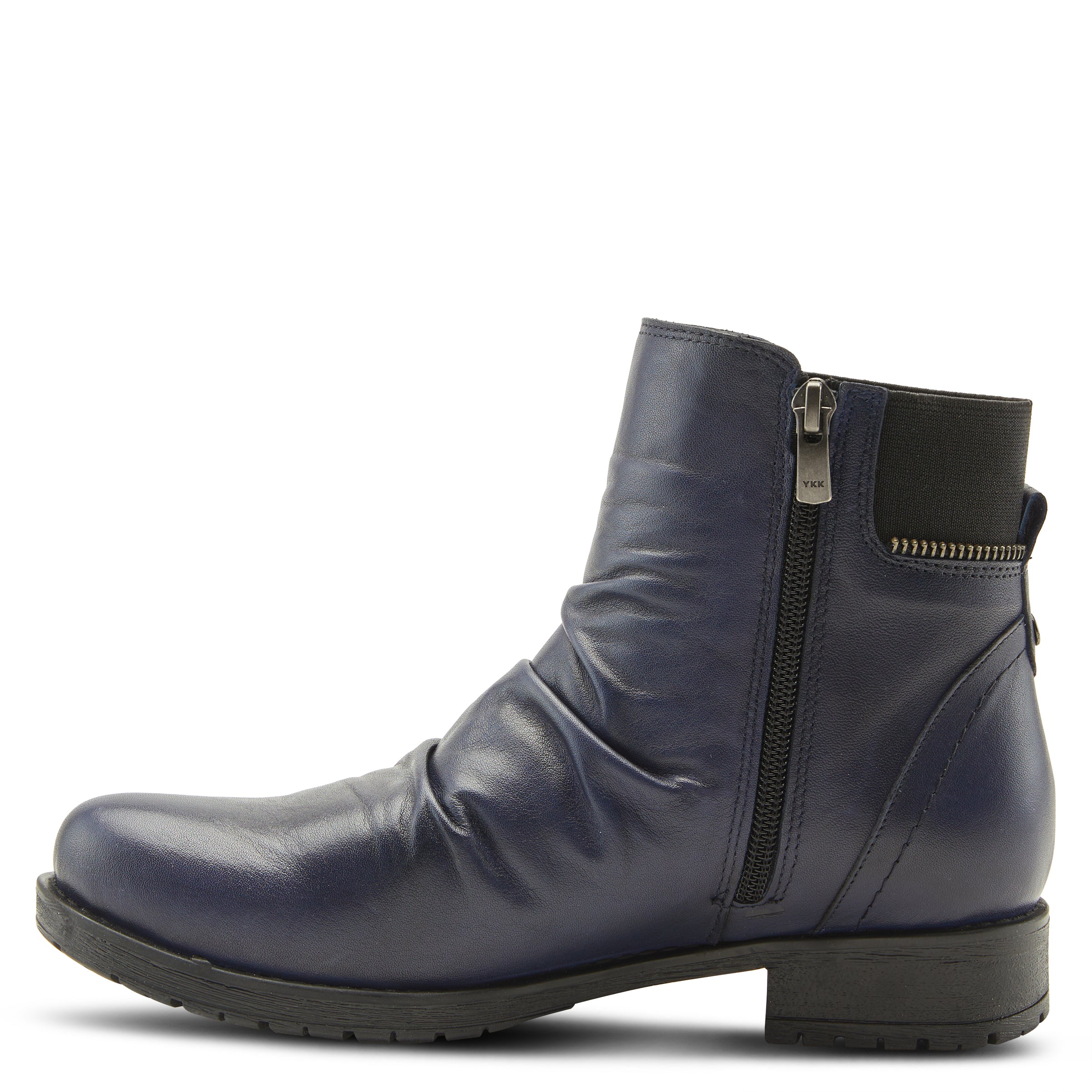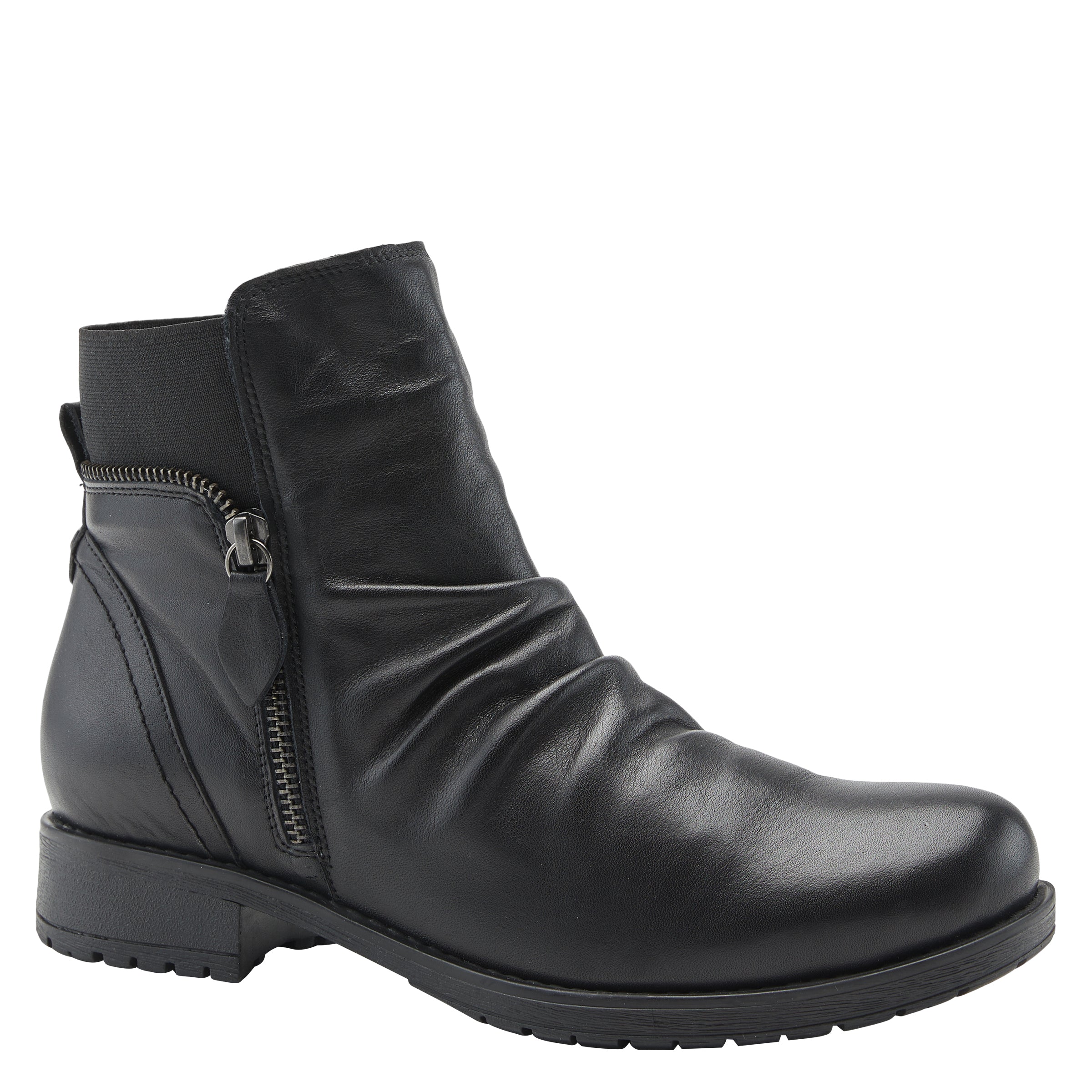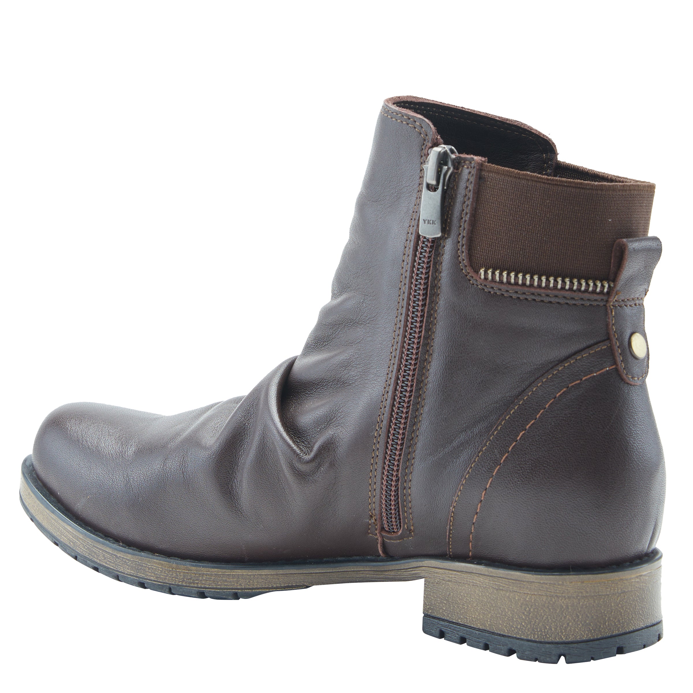 Fashionable outside moto-style decorative zipper brings a cool element to this buttery soft classic leather bootie. The elastic stretch band, cushioned insole and flexible sole bring comfort.