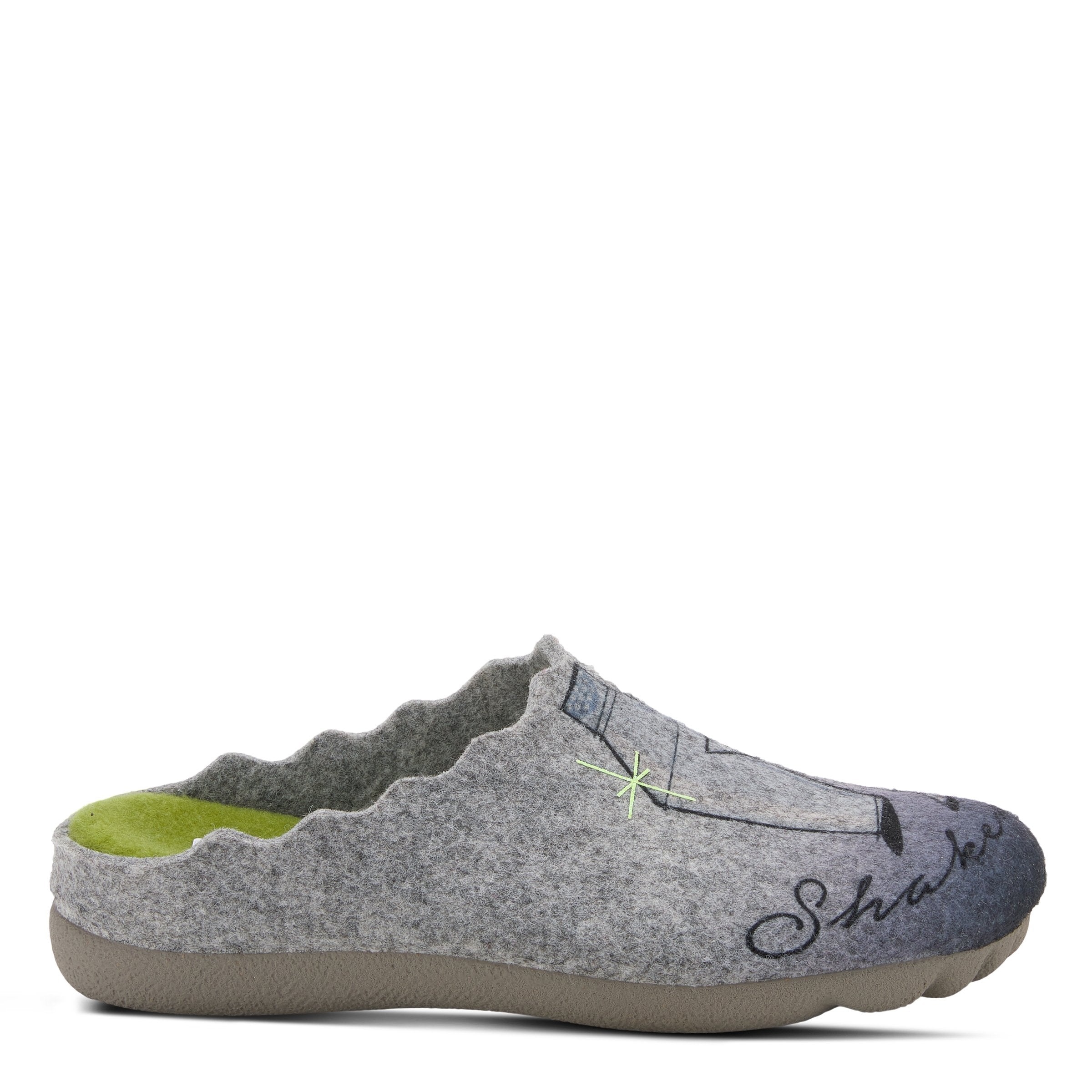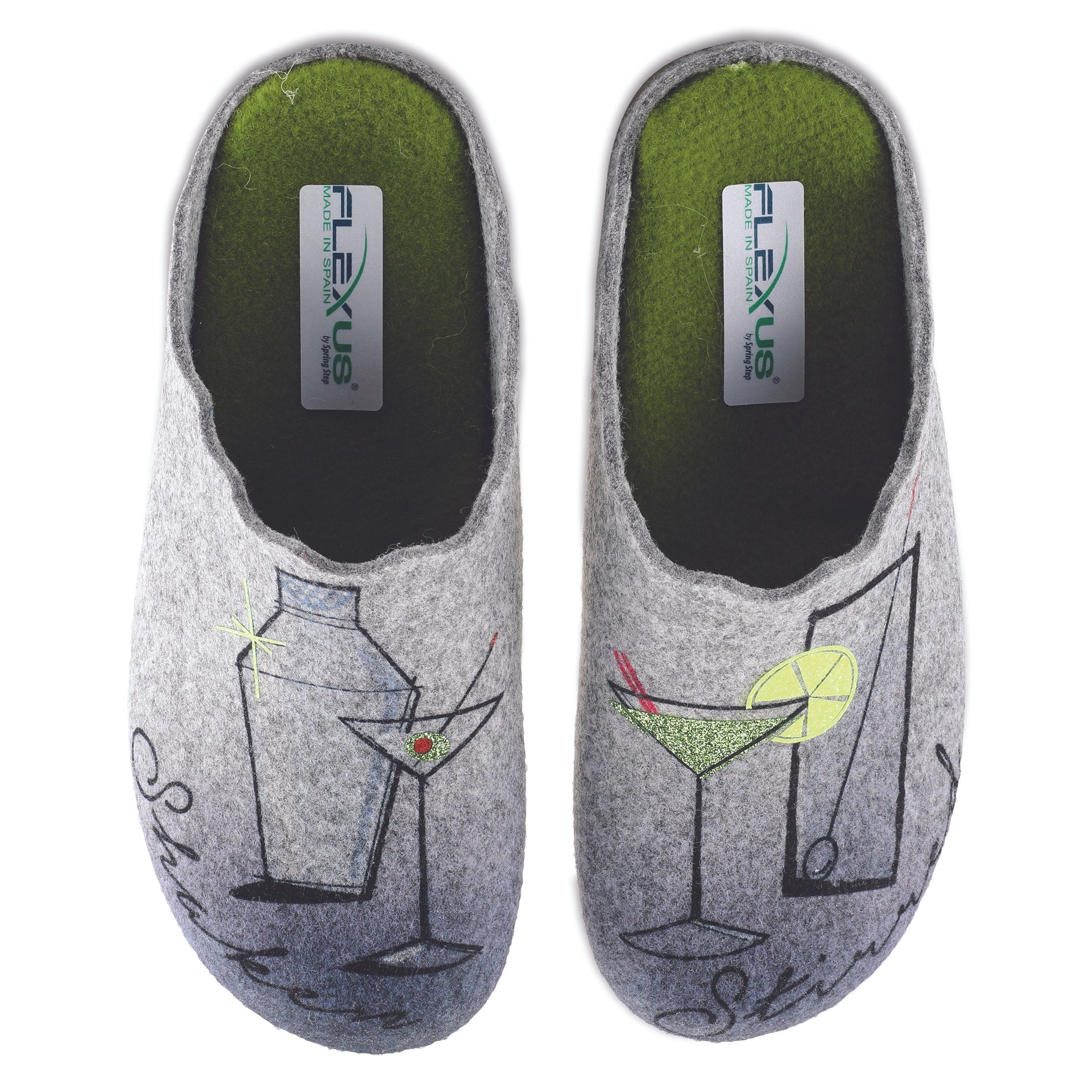 I bought 6 pair to give to my girlfriends so that when we get together at someone’s house in the snowy winter months we can sip in style instead of in our stocking feet. They run really wide so some of us will have to wear socks with them so that they don’t fall off our feet and risk spilling our martinis. They are super cute but the sizing is a little funky so I would have to say you would have to size down so that they don’t fall off your feet, but then they feel a little bit short. These are felt slippers made from a great fabric. The design on the front is very well done and such a conversation piece.