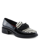 Make your mark with the GoGetter-Zeb. These slip-on zebra loafers feature a stunning mix of glossy black patent and a wild zebra print. A crystal vamp ornament adds a touch of elegance, while the comfortable block heel supports every step. As the perfect statement loafers, they effortlessly elevate any look from simple to show-stopping