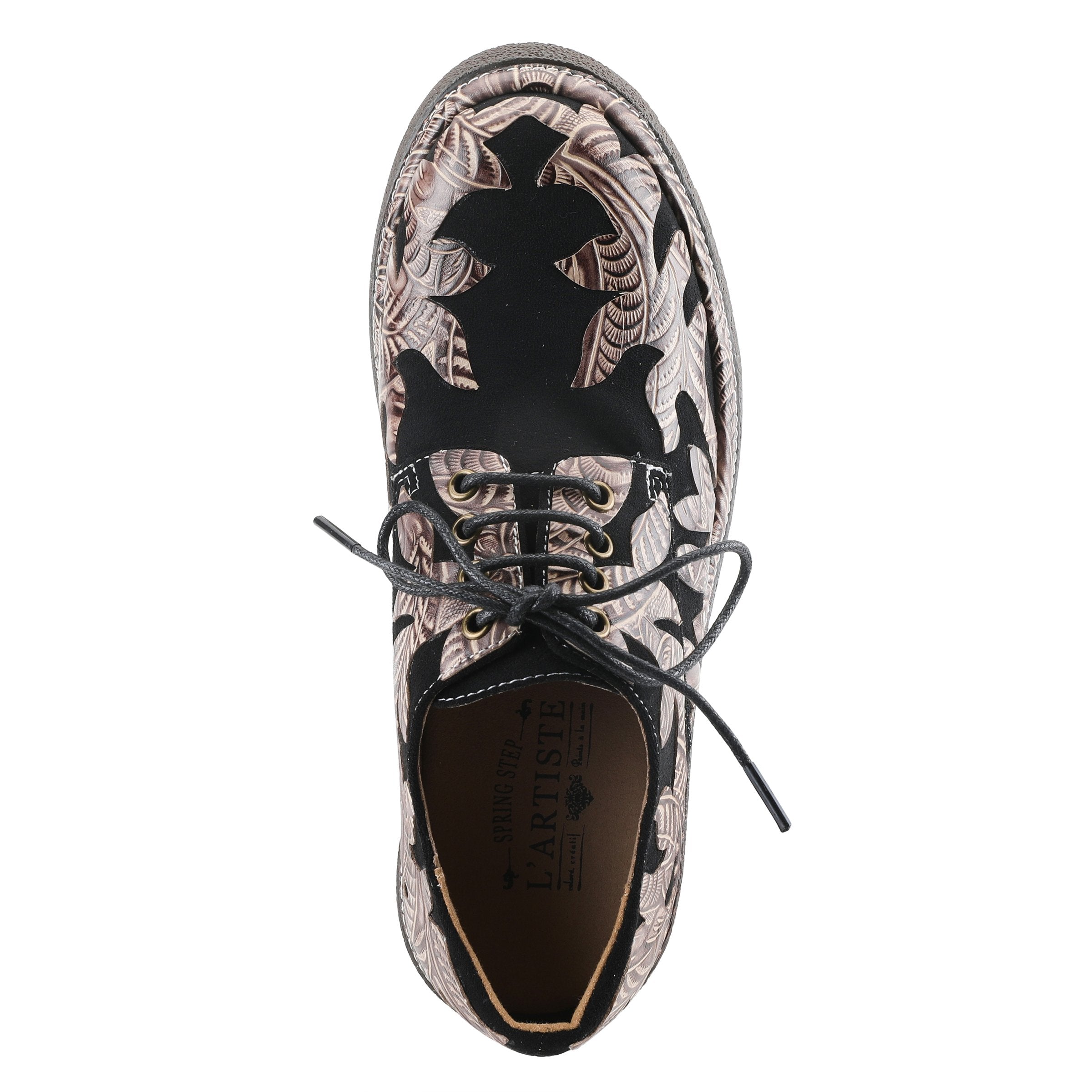 Menswear-inspired lace-up shoe showcasing beautifully textured onsets on a flexible, comfortable sole.