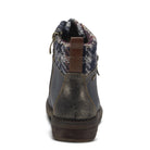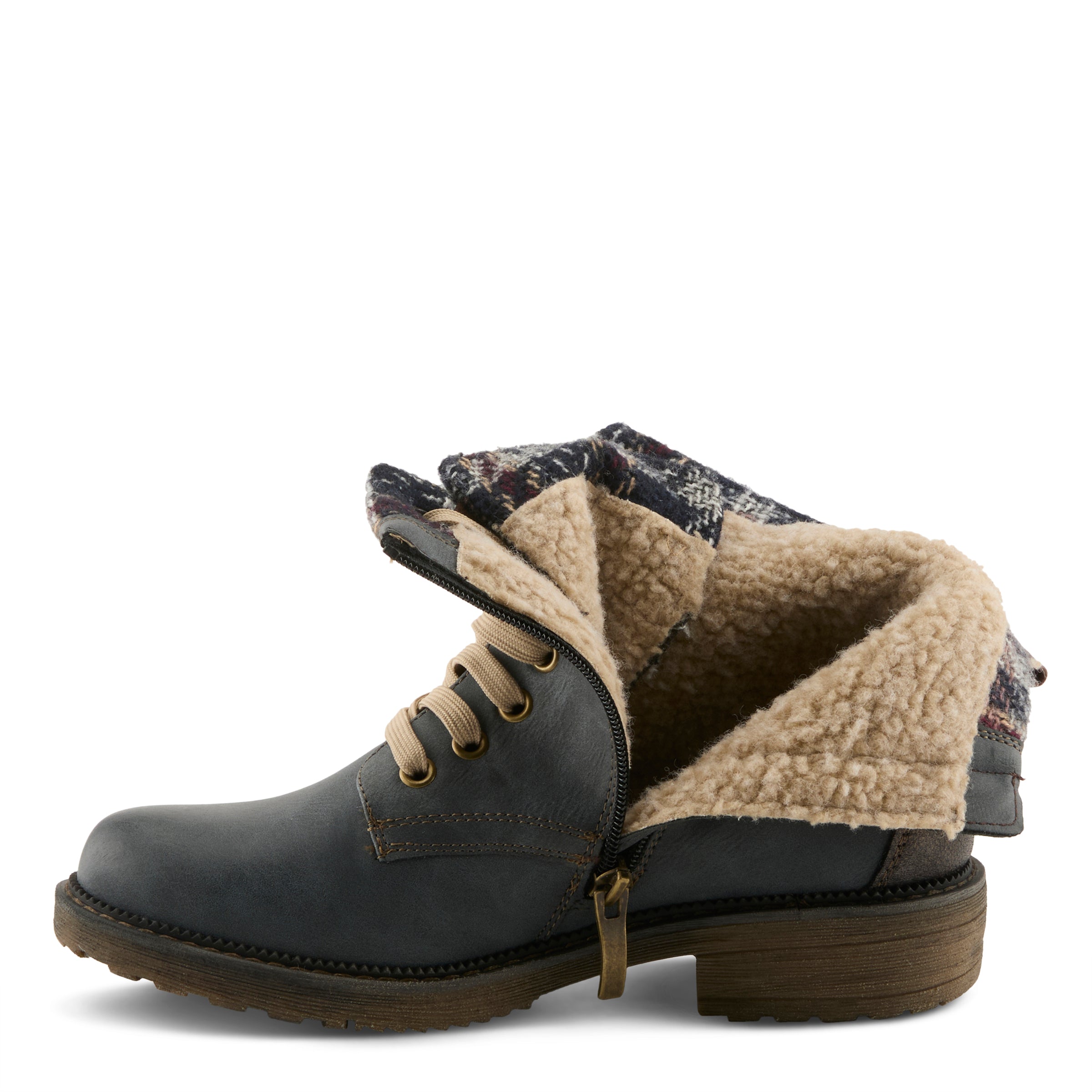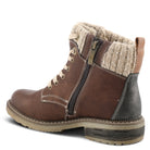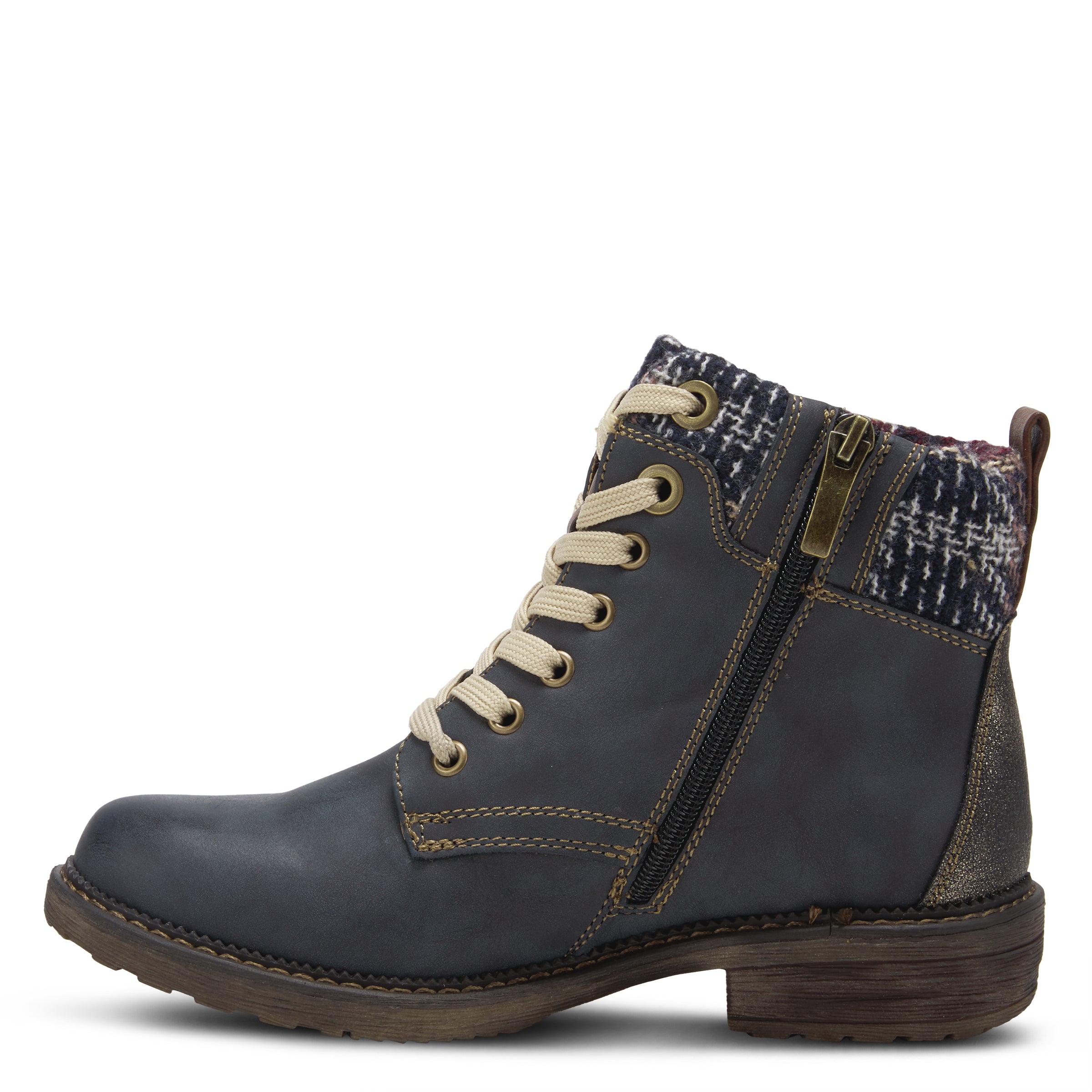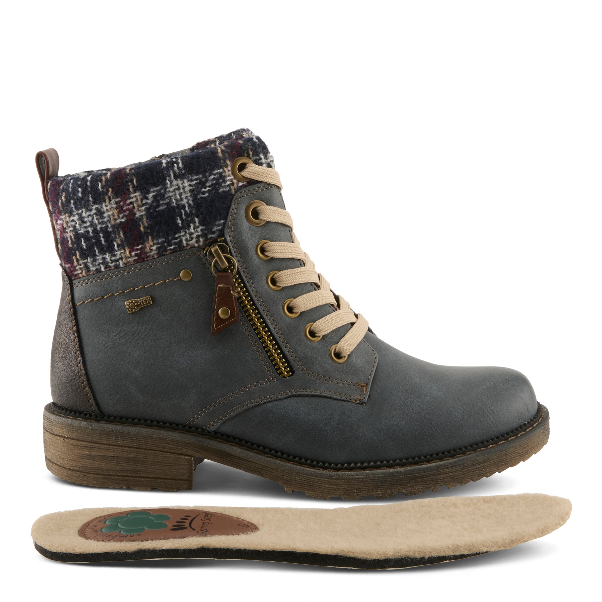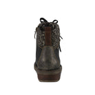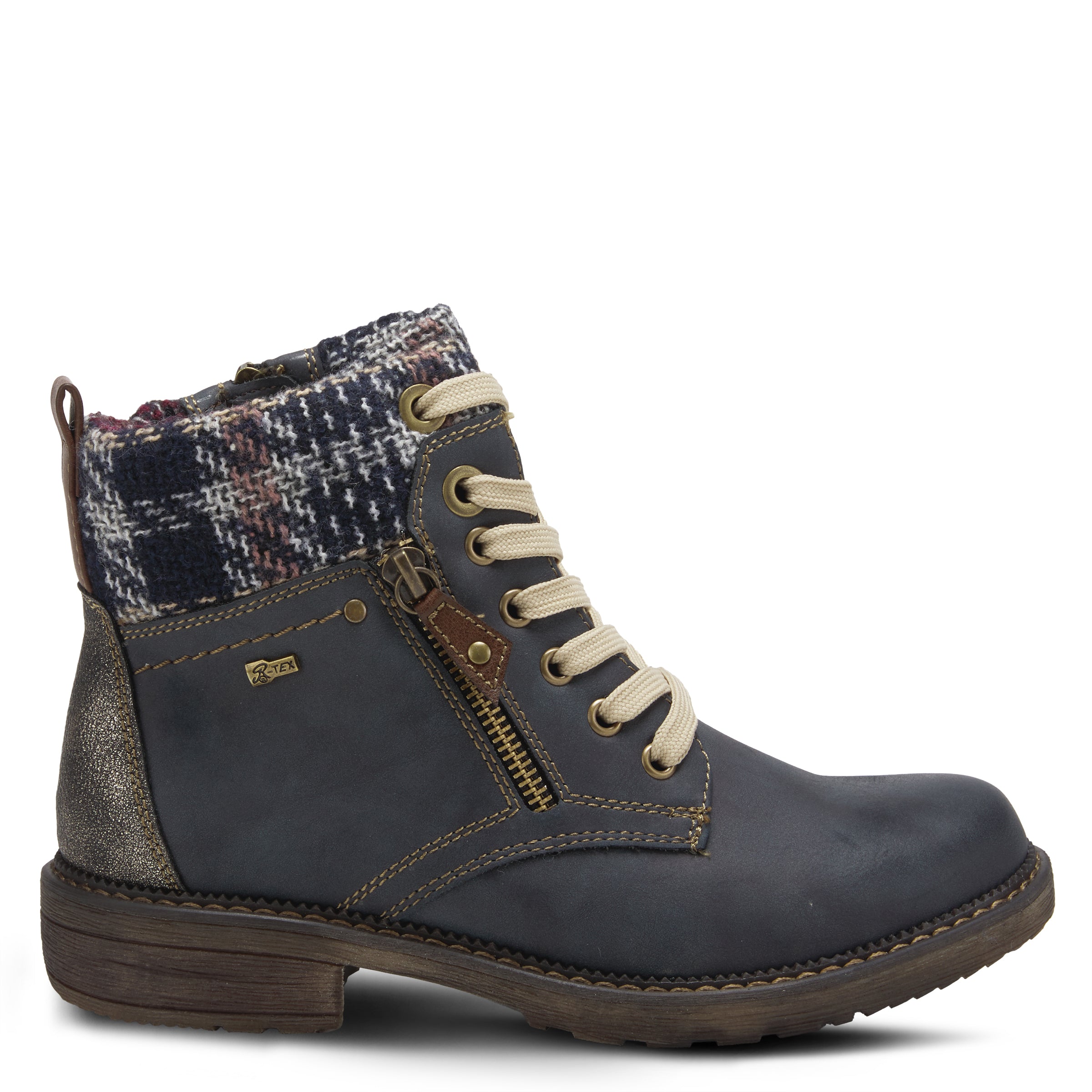 Experience the comfort revolution in this water resistant manmade leather pull-on lace-up bootie featuring a decorative lateral (outside) zipper design and an easy on/off full length inside zipper all on a chunky and sculpted heel.