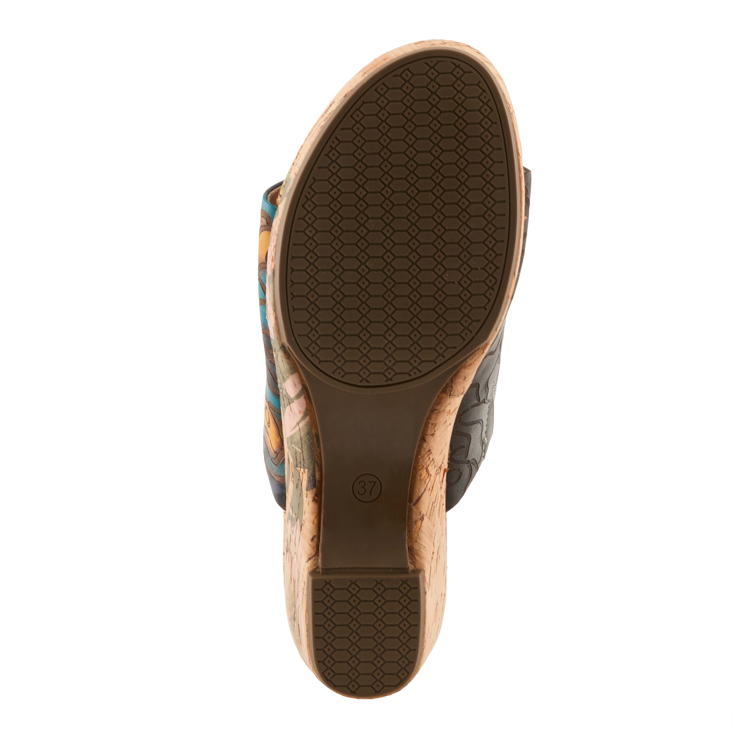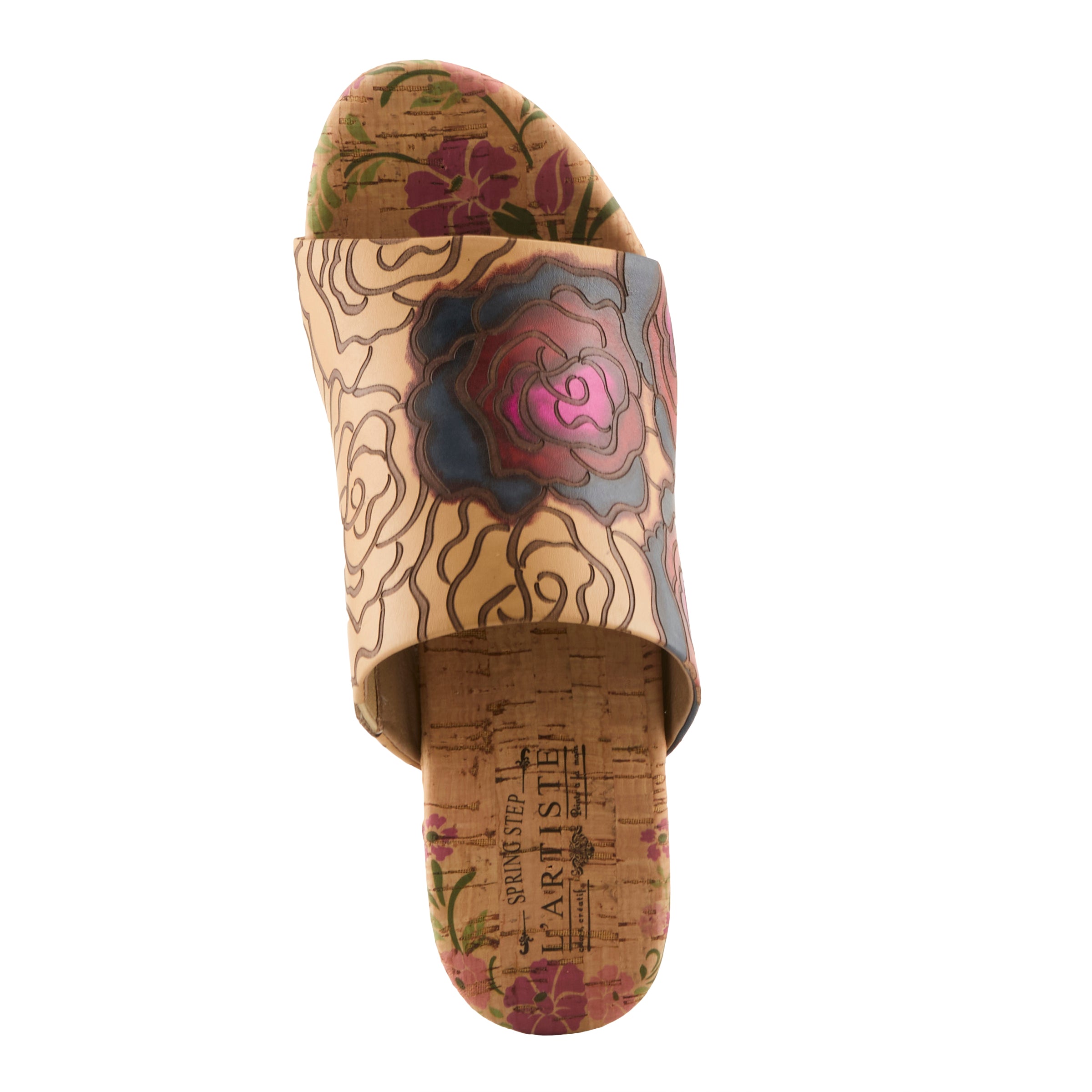 - Hand-painted cork insole and midsole extend the design’s impact